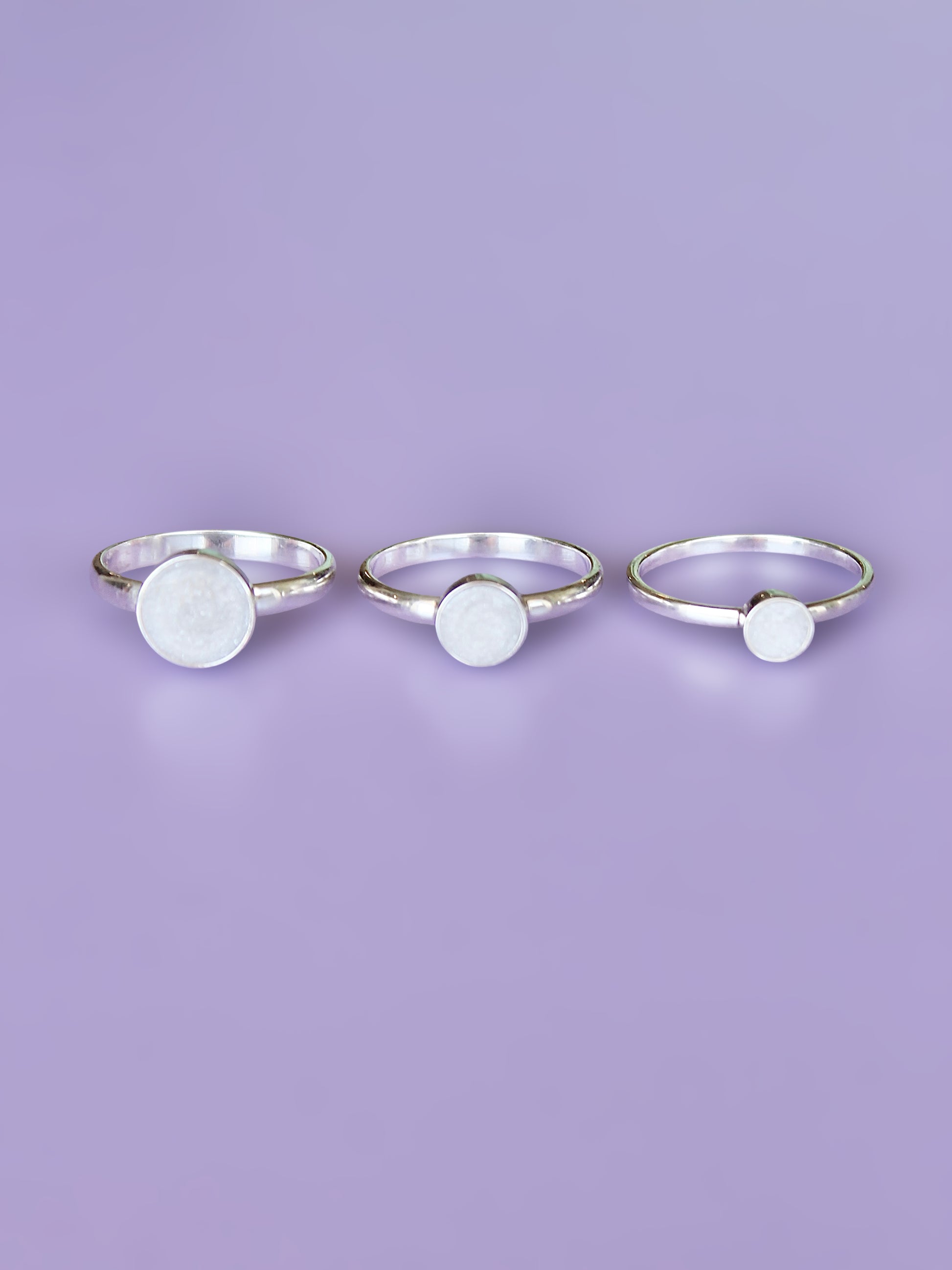 Each ring is custom made just for you in your desired size. If you know your ring size, great! Add your ring to the cart with your selected size & we'll get it started. If you don't know yet, don't worry. Add on a ring sizing kit or decide later and let us know your ring size when you send your inclusions back to us.
